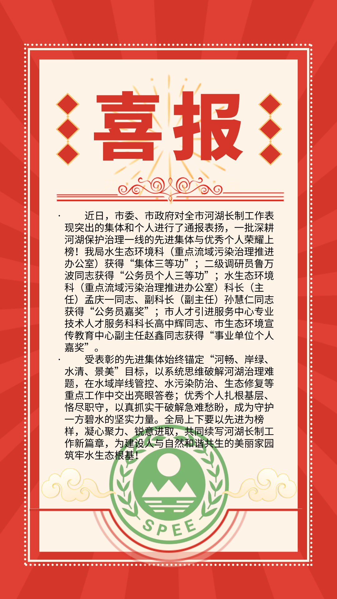 关于在全市河湖长制工作中表现突出集体和个人的喜报